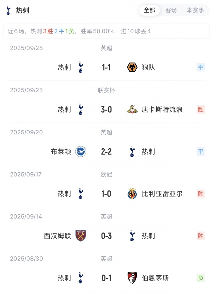 热刺客战博德闪耀首发:约翰逊、理查利森先发,帕利尼亚替补